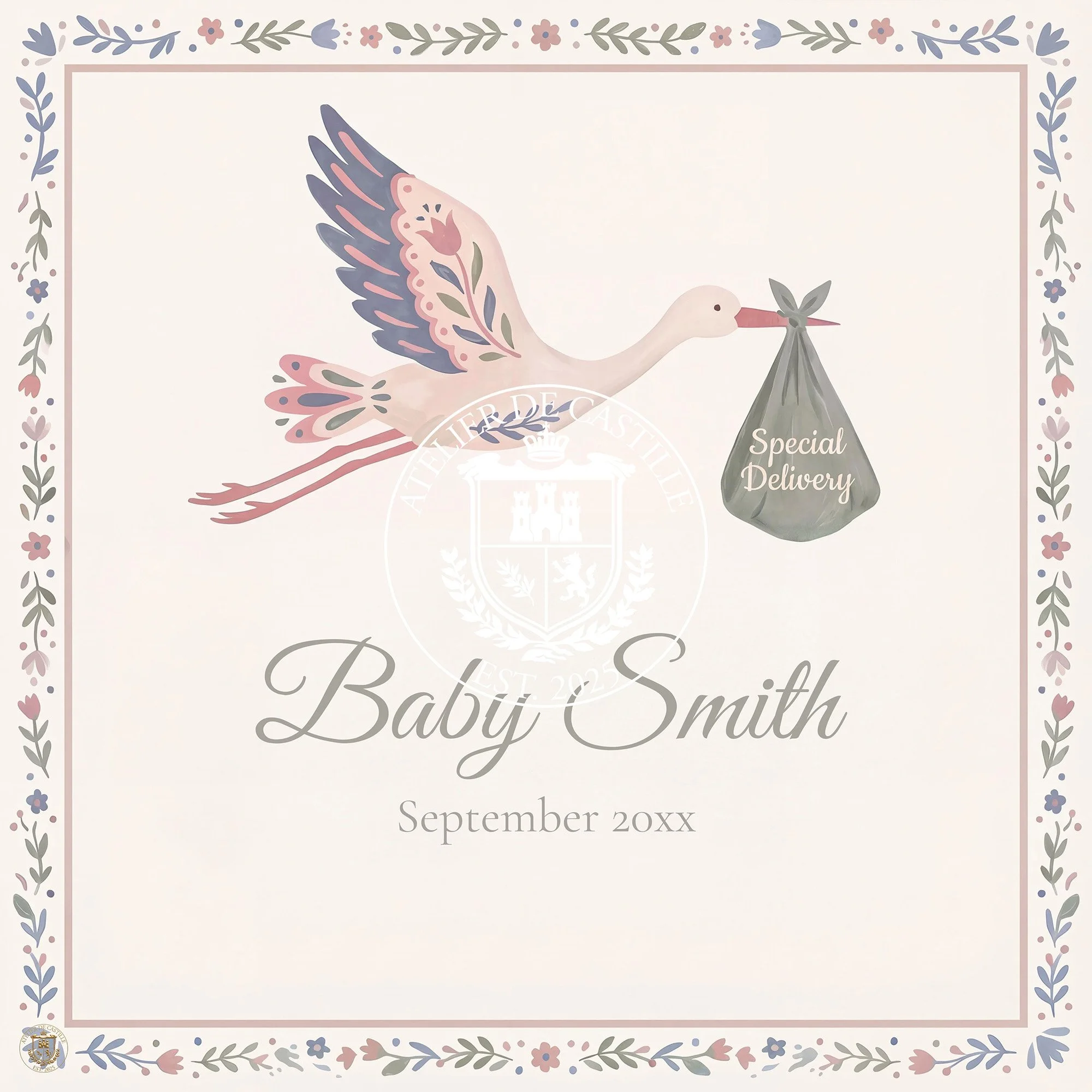 Minimalist Floral Baby Announcement Template • Classic & Elegant Pregnancy Reveal • Editable In Canva