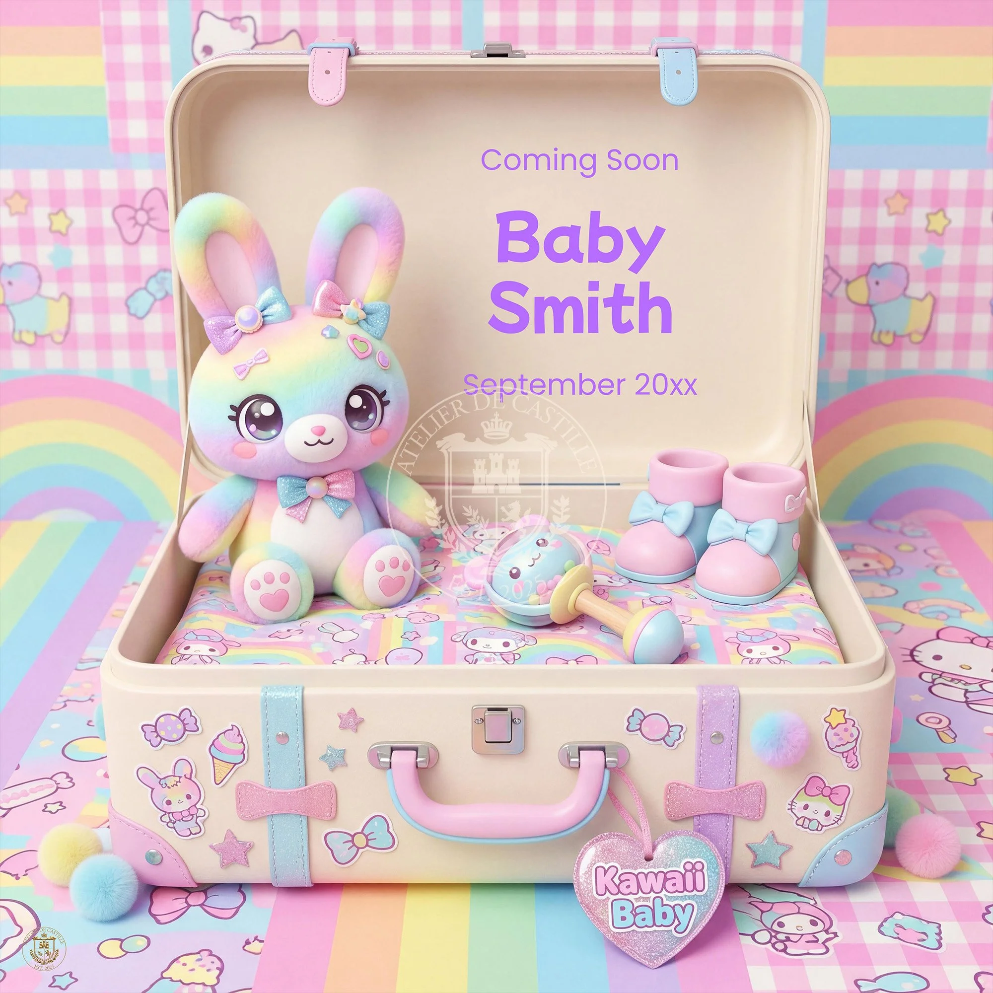Kawaii Pastel Baby Announcement • Rainbow Bunny Pregnancy Reveal (Digital Download)